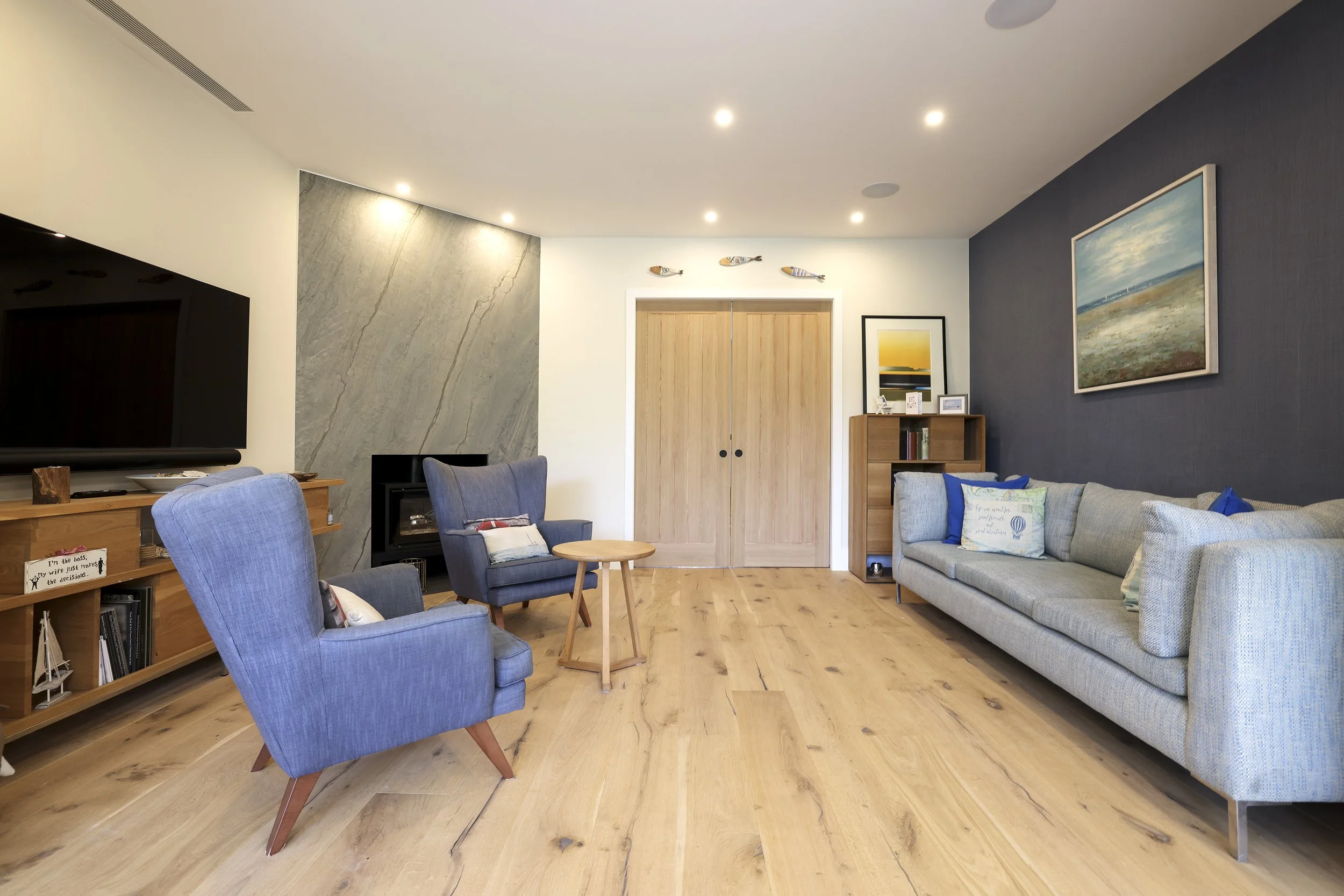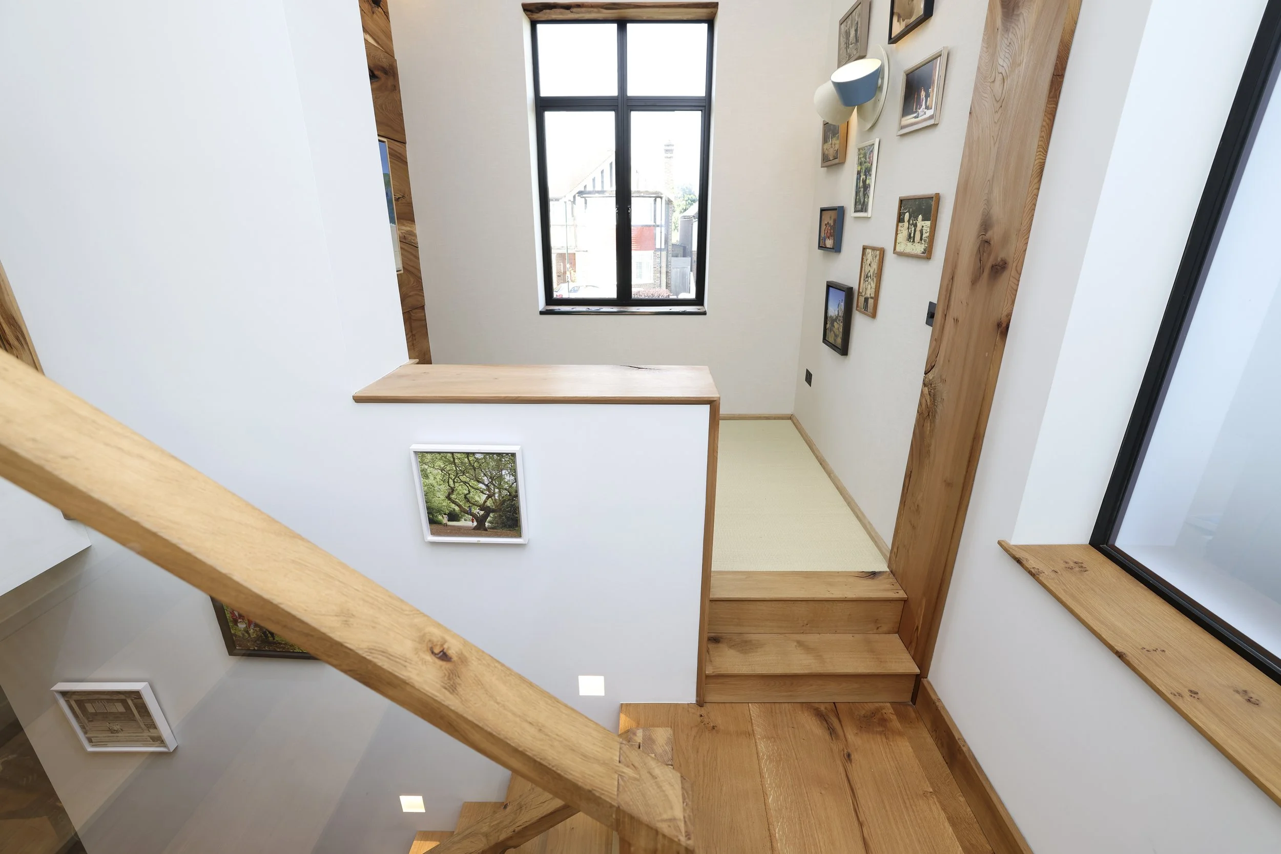 This project transforms the property into a modern Japanese-inspired abode, featuring bespoke joinery and natural wooden elements throughout. Key works include a loft conversion, extensive renovation, and a large extension. Expansive glazing fills the space with natural light, highlighting the warmth and texture of the wood, creating a calm and harmonious living environment.